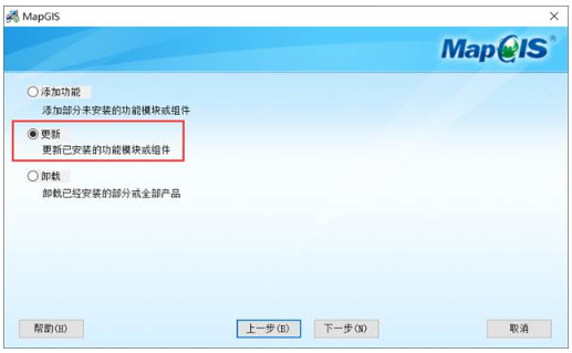 2)既无法启动存储服务或服务列表中找不到存储服务时,退出杀毒软件,重新安装MapGIS Runtime,选择第二个选项更新,安装完成即可重新打开软件。安装时,软件不要安装在C盘,右键管理员安装。