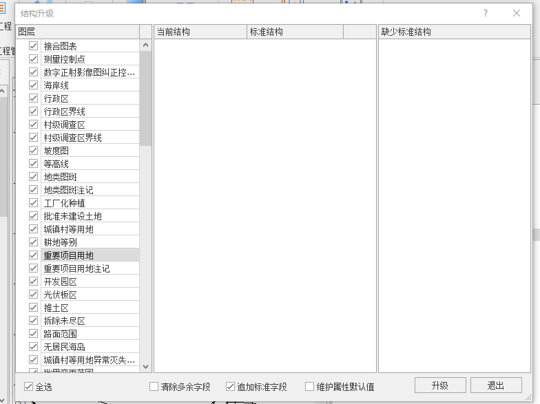 26、数据结构升级时,当前结构、标准结构栏下面都为空,无法数据结构升级。