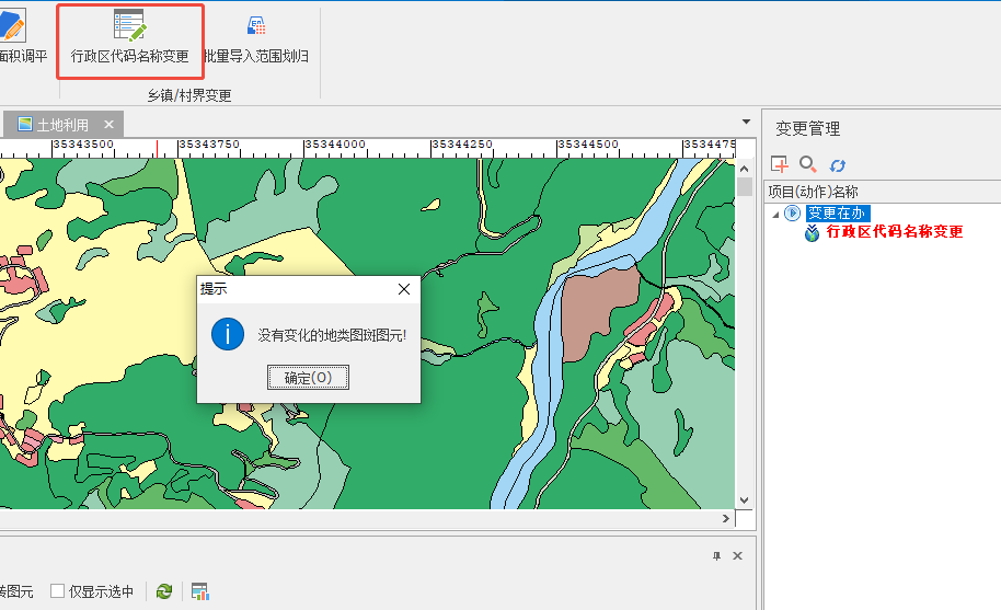 34、行政区代码名称变更时提示“没有变化的地类图斑图元!”