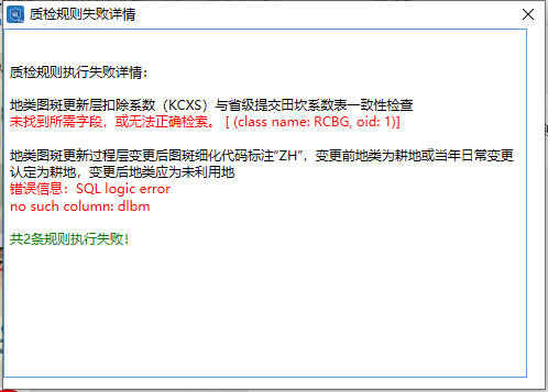 2、导入基础数据质检,若存在日常变更图层,质检完成后,有如下两项规则失败,如下图:
