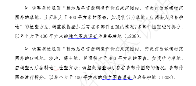 质检软件设置的耕地后备质检规则是针对涉及到存在变更的图斑才进行质检。如基础库为草地,该图斑位于耕地后备资源调查评价成果范围内,只有该图斑涉及变更被提取到地类图斑更新层,质检规则才会进行检查,未变更图斑质检不检查。图斑是否变更为耕地后备需核查确定。