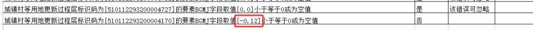 5、城镇村等用地更新过程层标识码为[51XXXX293200004170]的要素BGMJ字段取值[-0.12]小于等于0或为空值