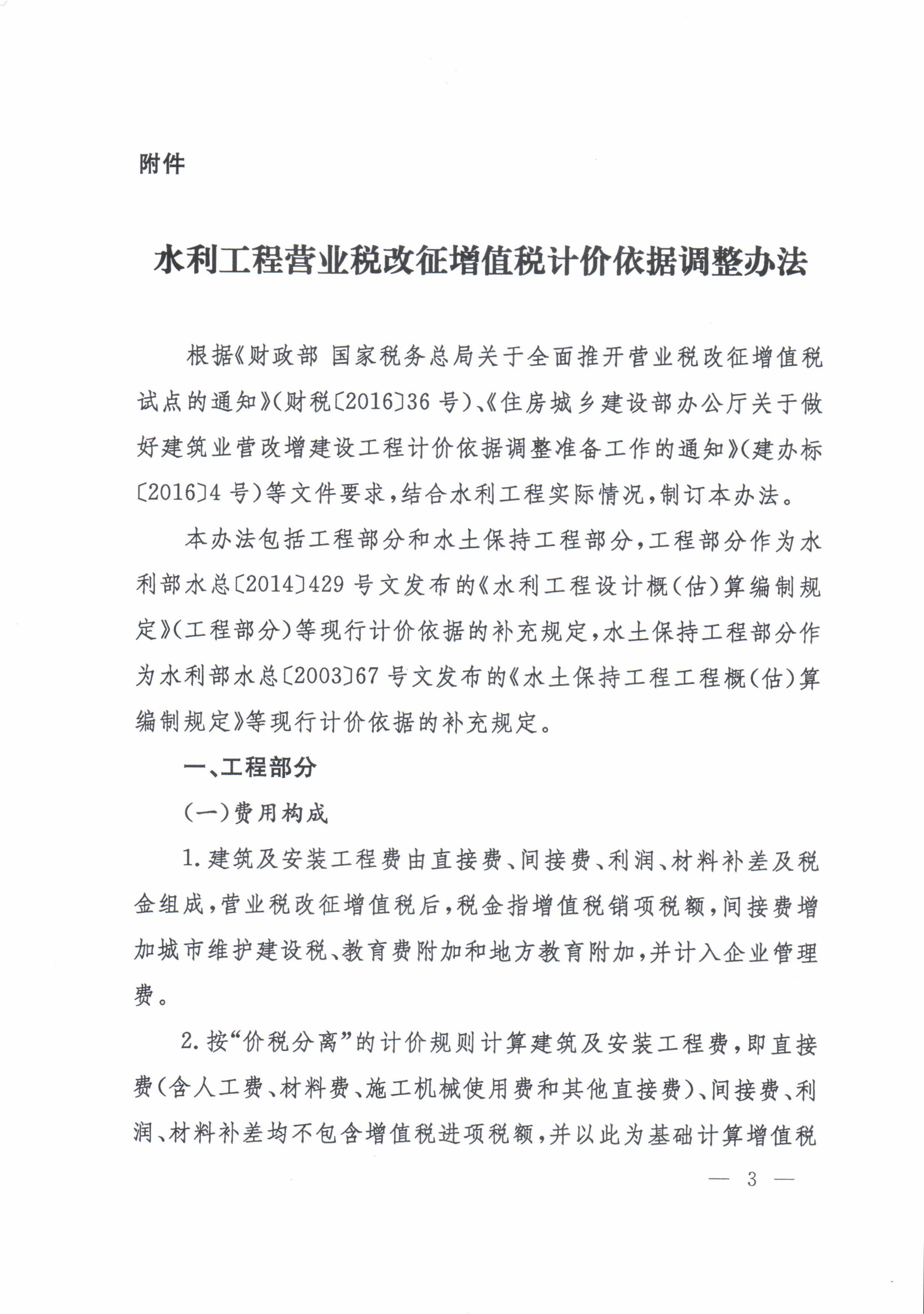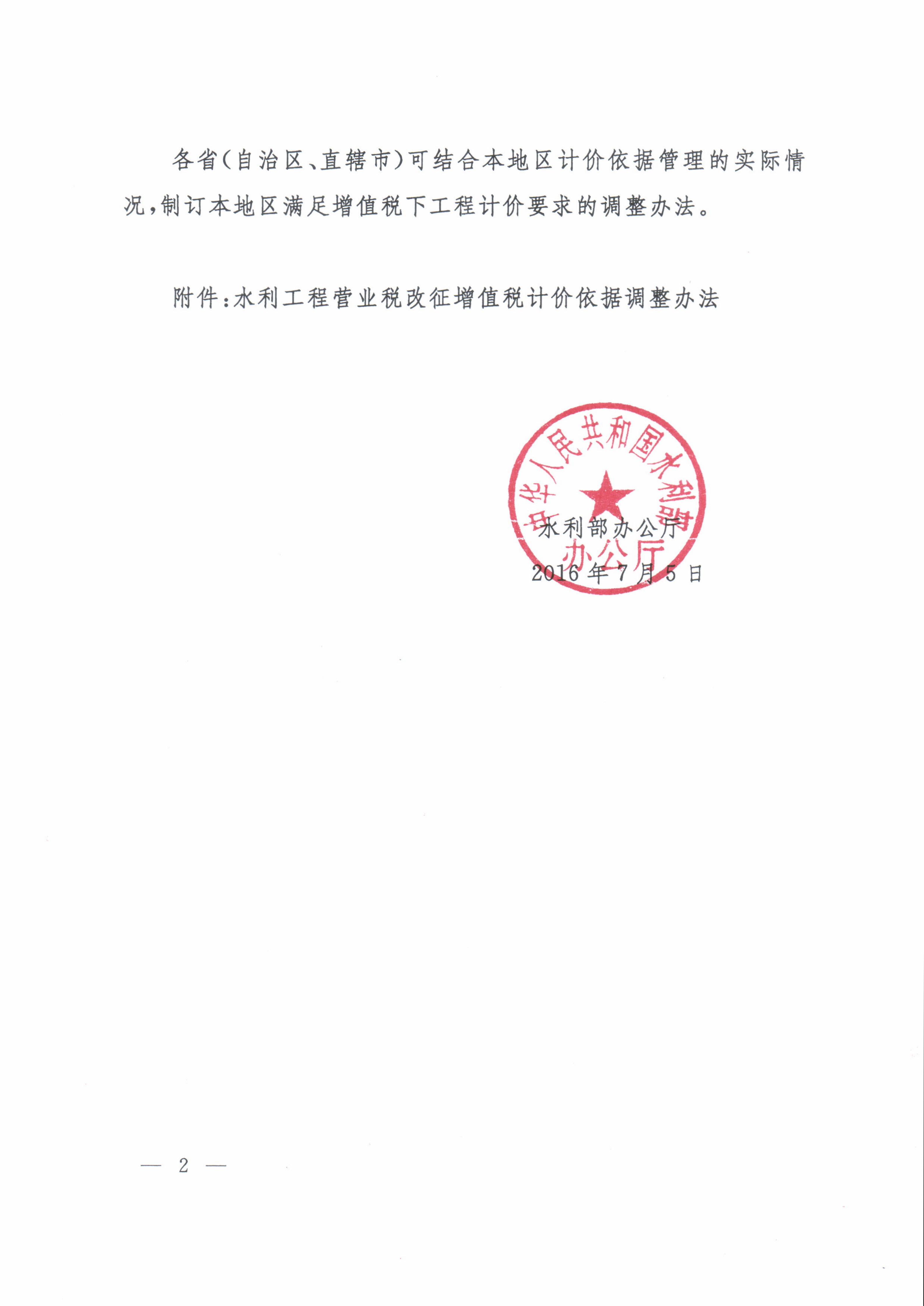 水利部办公厅关于印发《水利工程营业税改增值税计价依据调整办法》的通知(办水总[2016]32号)