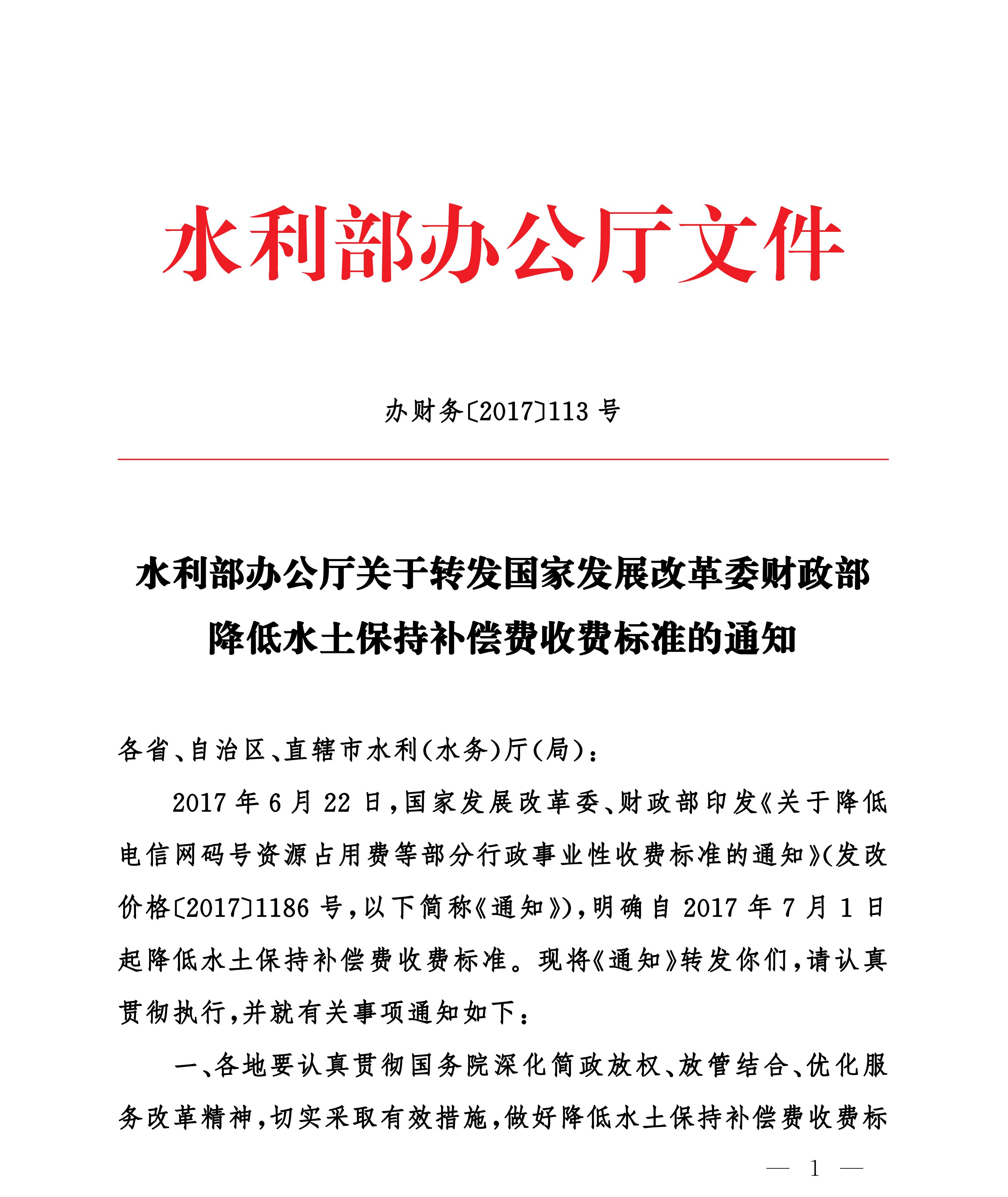 水利部办公厅关于转发国家发展改革委财政部降低水土保持补偿费收费标准的通知