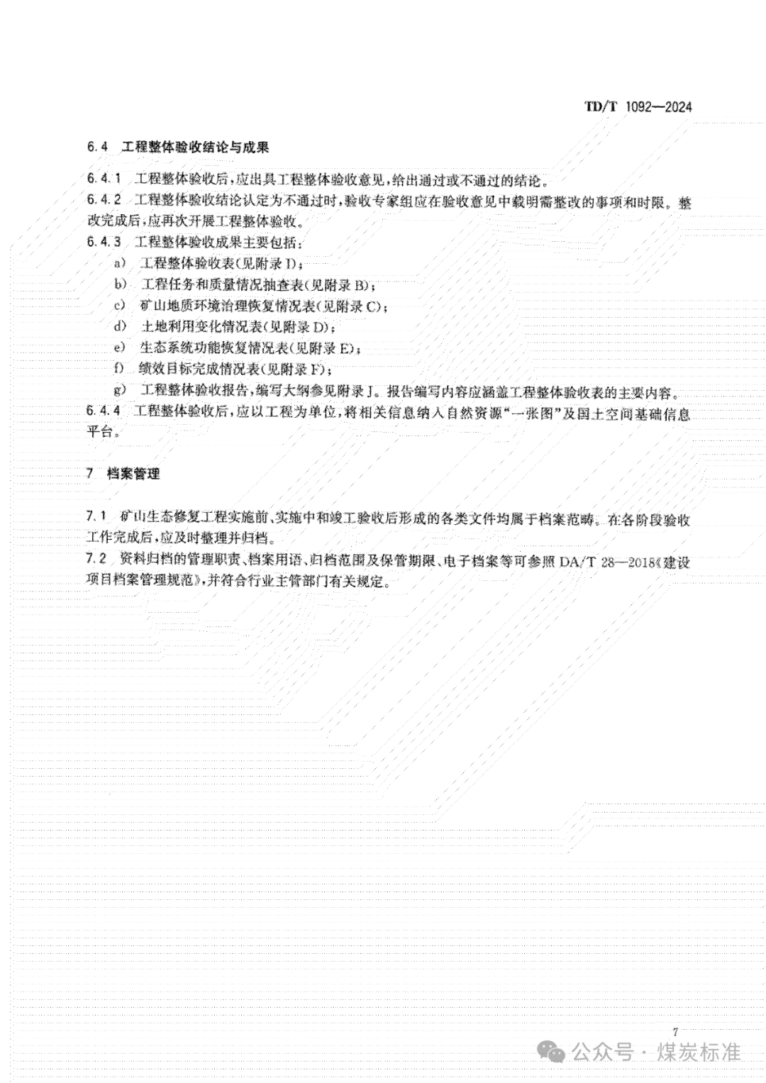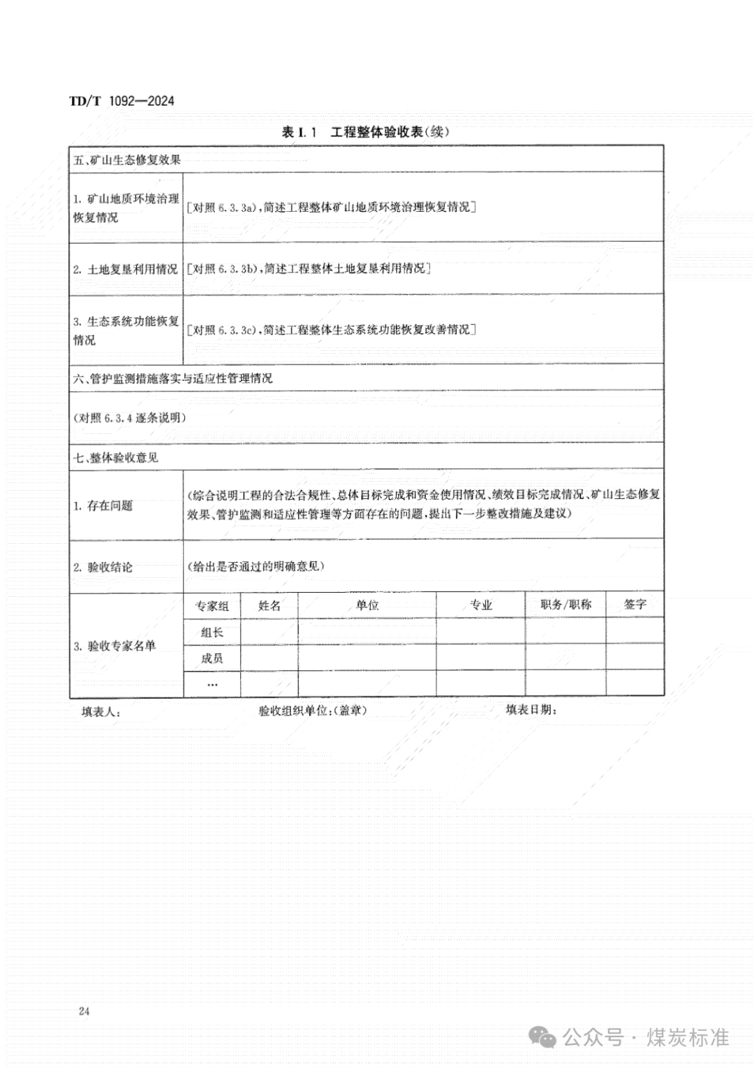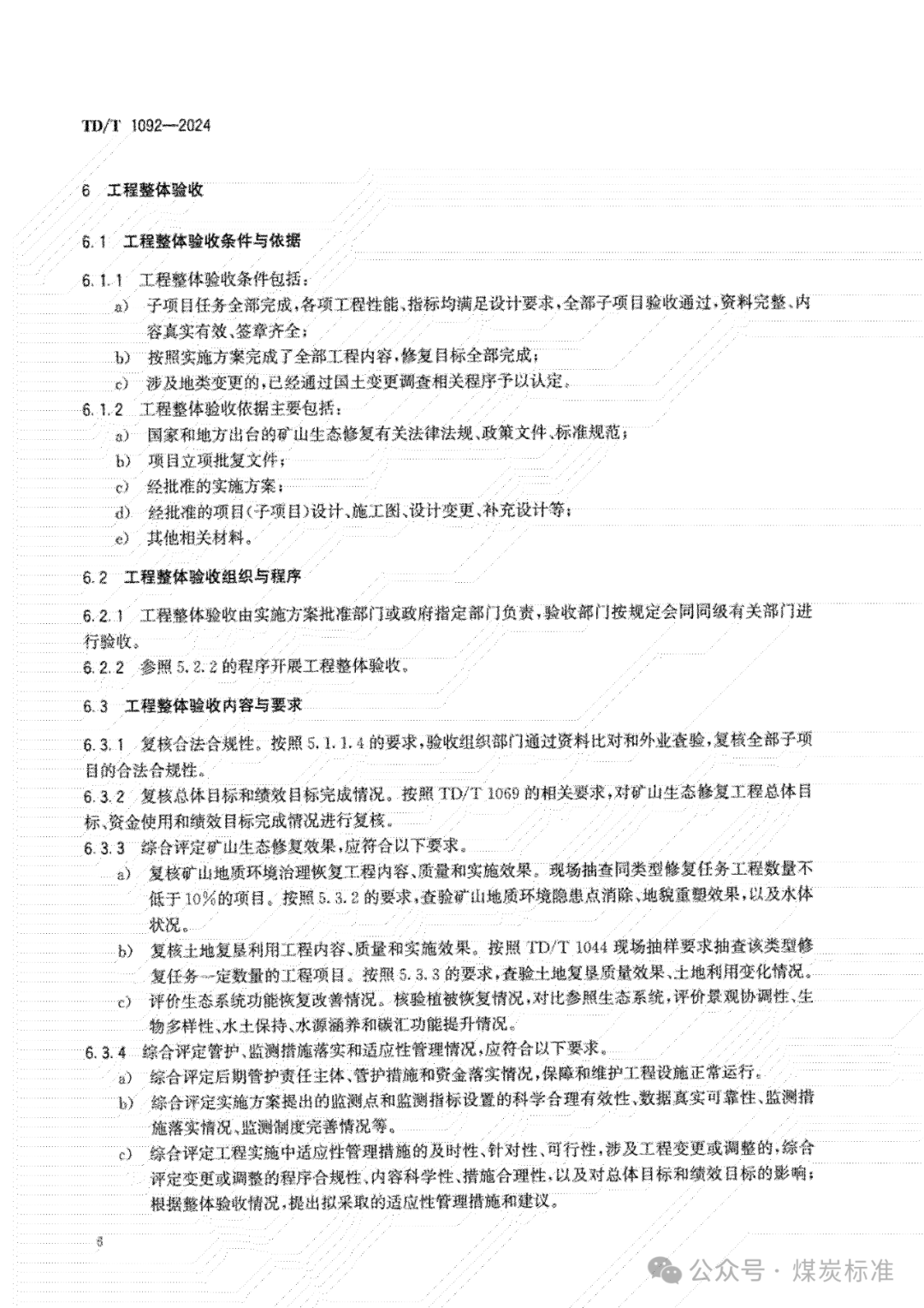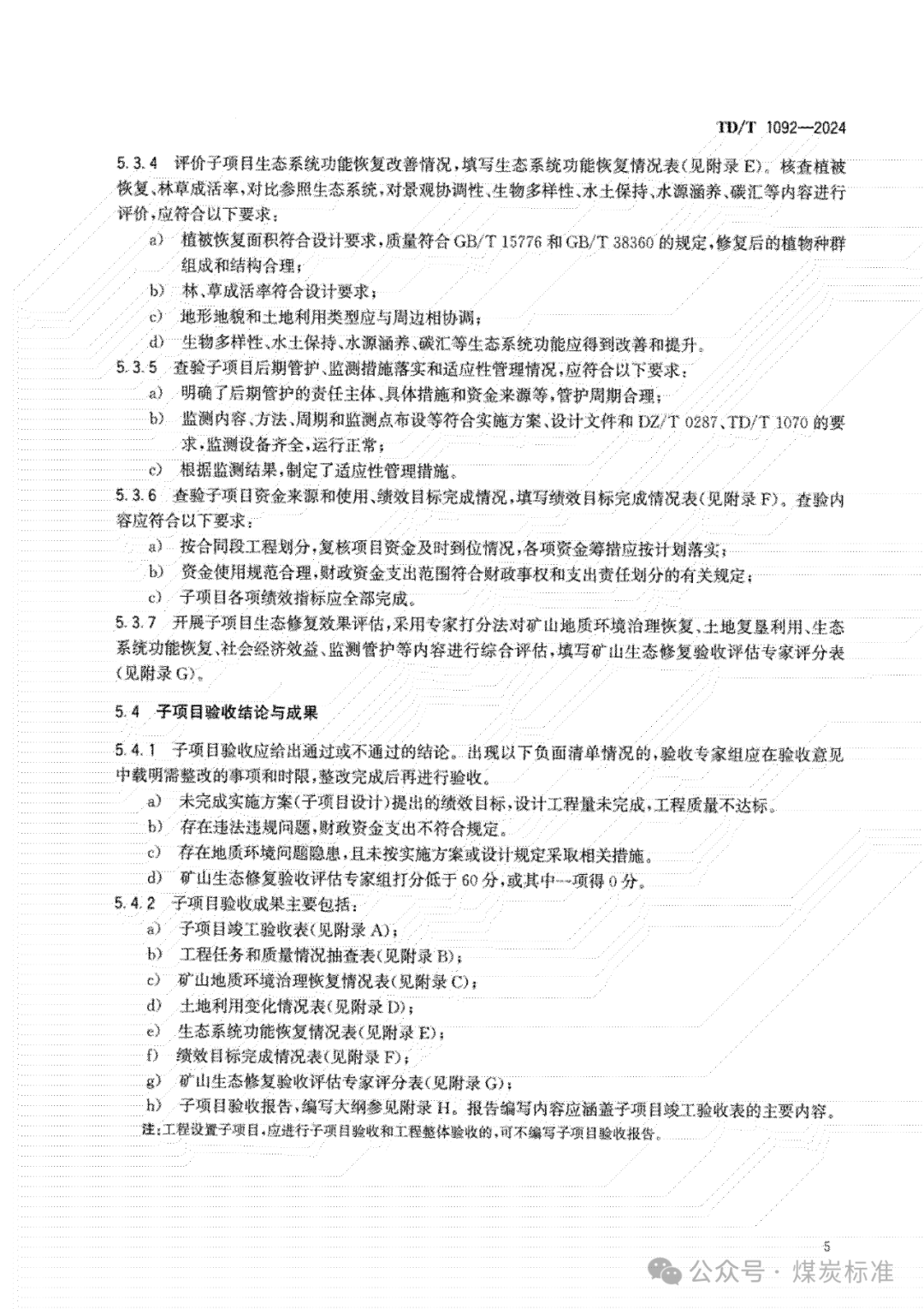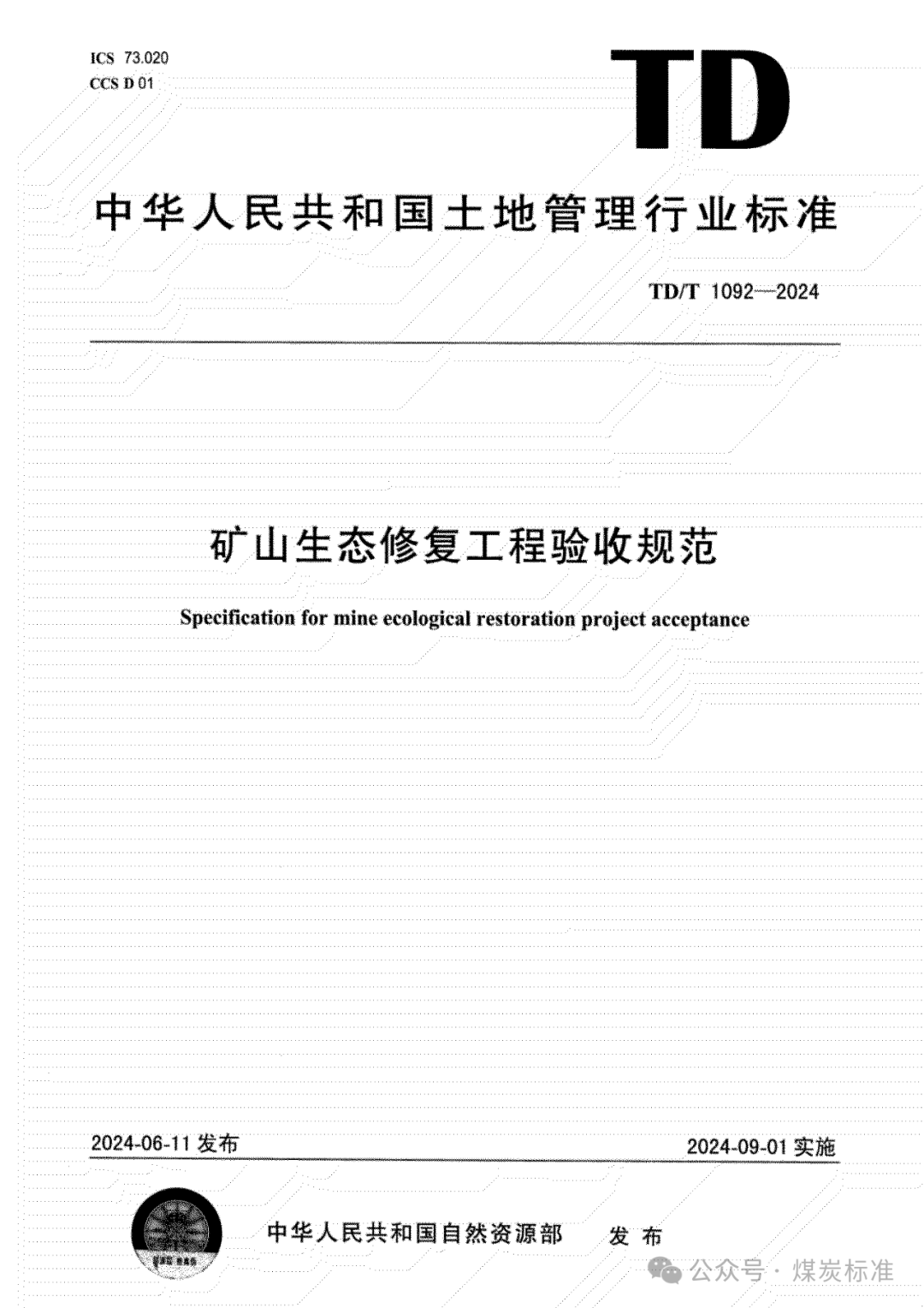 矿山生态修复工程验收规范(TD/T 1092-2024 )