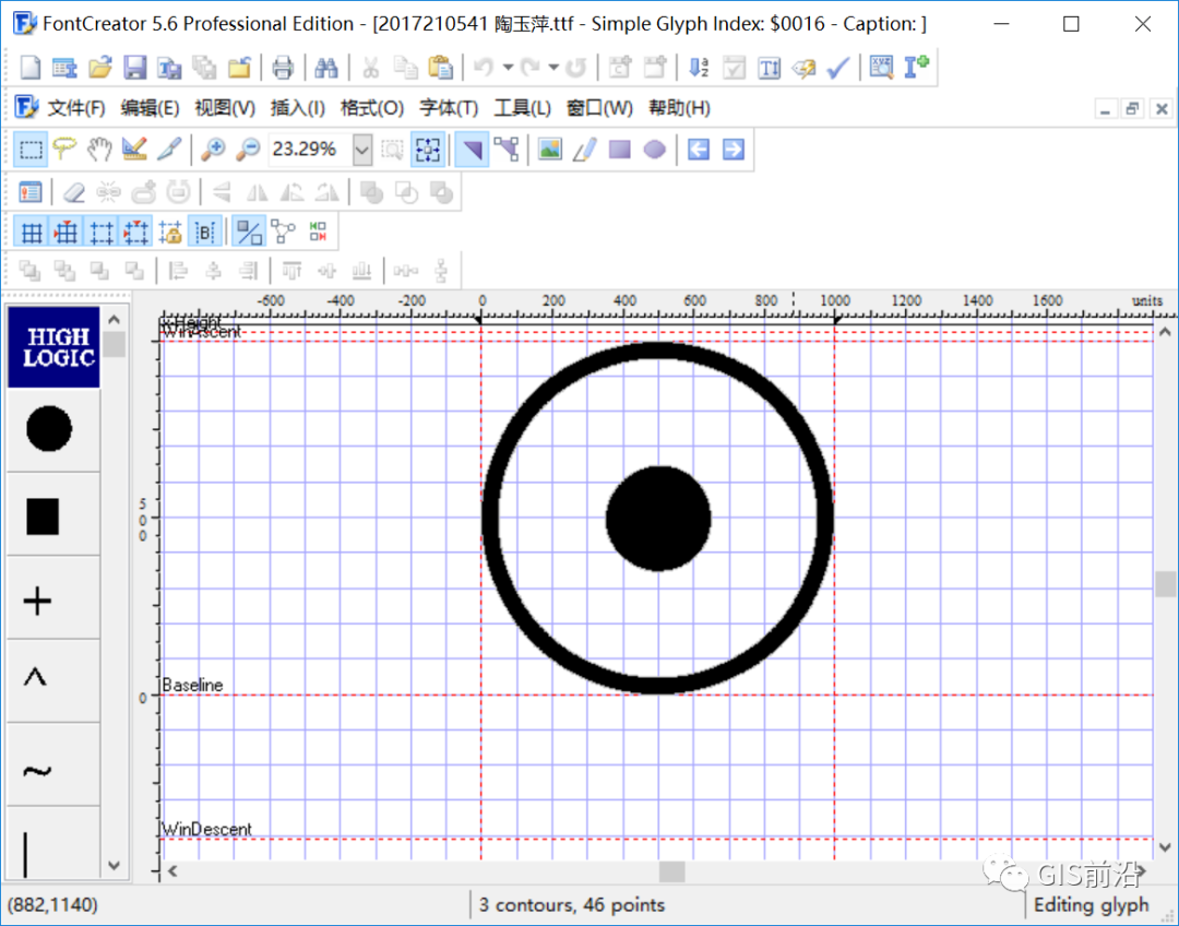 4、绘制完成后,隐藏底图,利用截图工具,将截图复制粘贴到FontCreator上去,设置格式,点击【完成】;