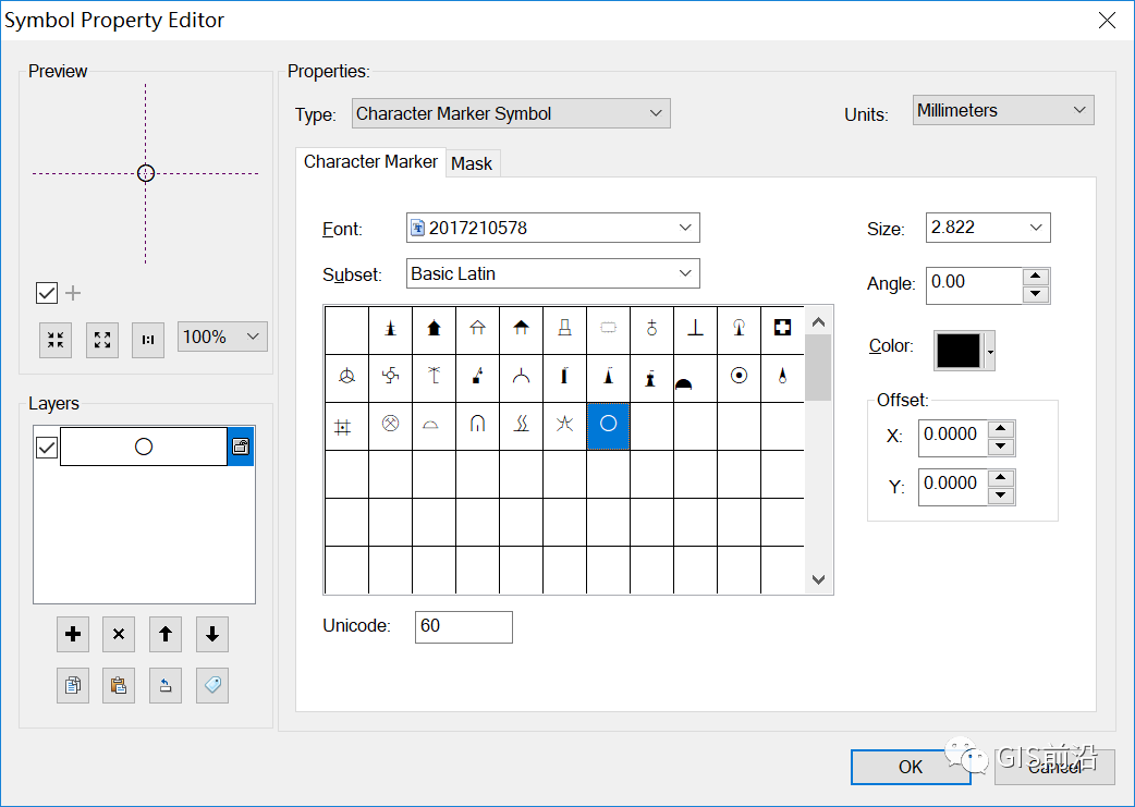 2、点击“添加图层”,设置新加图层的线类型为“混列线符号”,角度 90,点击【混列符号】按钮,弹出符号选择器;