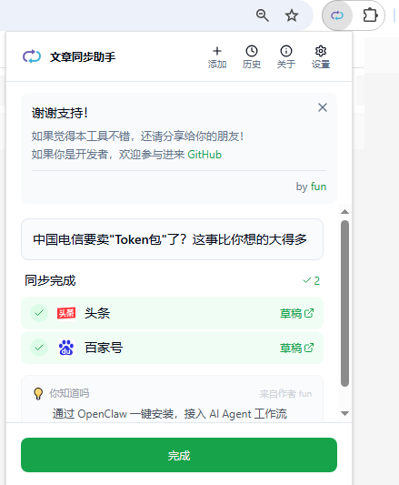 2. 扩展工具自动识别你在浏览器里登录过的平台(头条号、小红书、微博、知乎……)