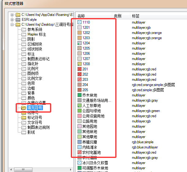 3、之后便可以在ArcGIS 的样式管理器中调用。