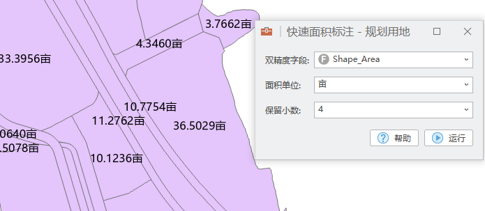 参数很简单,就是选择面积字段,面积单位,以及小数位数。