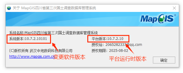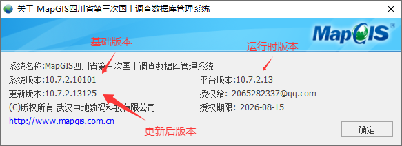 a、保持1)-3)安装步骤正确,然后下载群文件夹“2025年度变更调查资料”中“MapGIS四川省第三次国土调查数据库管理系统10.7.2.13127”的UDT文件进行更新,然后下载群文件夹中最新UDT文件进行最新版本更新即可。