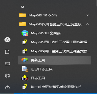 1)在电脑安装目录“开始”找到“MapGIS四川省第三次国土调查数据库管理系统”下的“更新工具”。