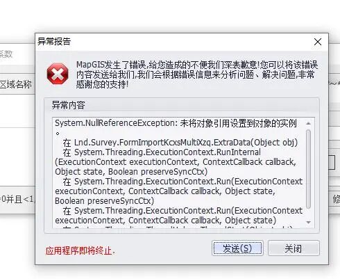 9、“录入田坎系数”点击“数据录入提取”时软件报错:未将对象引用设置到对象的实例。