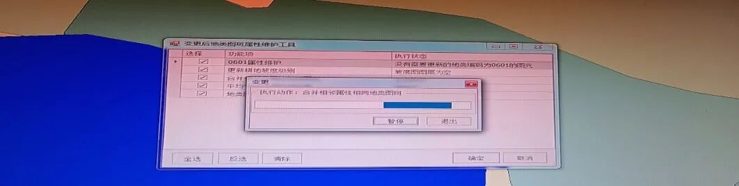 11、变更后地类图斑属性维护工具,执行合并相邻属性相同地类图斑运行时间较长。