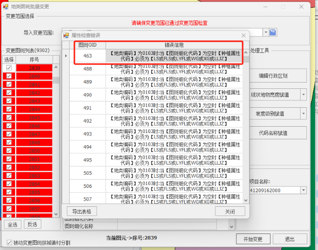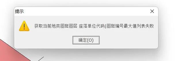 22、进行图斑分割变更时提示:获取当前地类图斑图层座落单位代码|图斑编号最大值列表失败