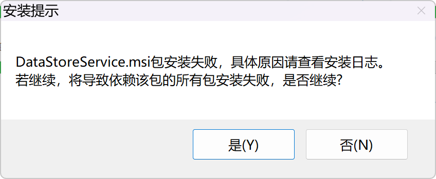 33、安装运行时提示“DataStoreService.msi包安装失败……”.