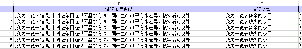 7、变更一览表错误:[变更一览表错误]中对应条目疑似因益加方法不同产生0.01平方米差异,核实后可例外