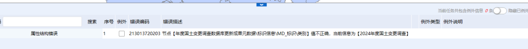 12、属性结构错误213013720203 节点【年度国土变更调查数据库更新成果元数据\标识信息\MD 标识\类别】值不正确,当前信息为【2024年度国土变更调查】。