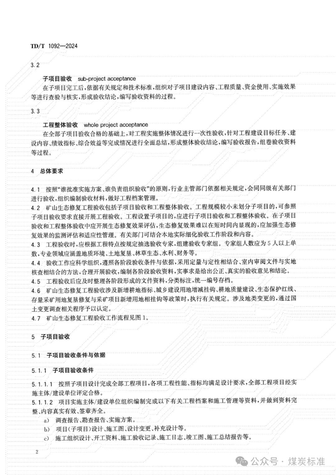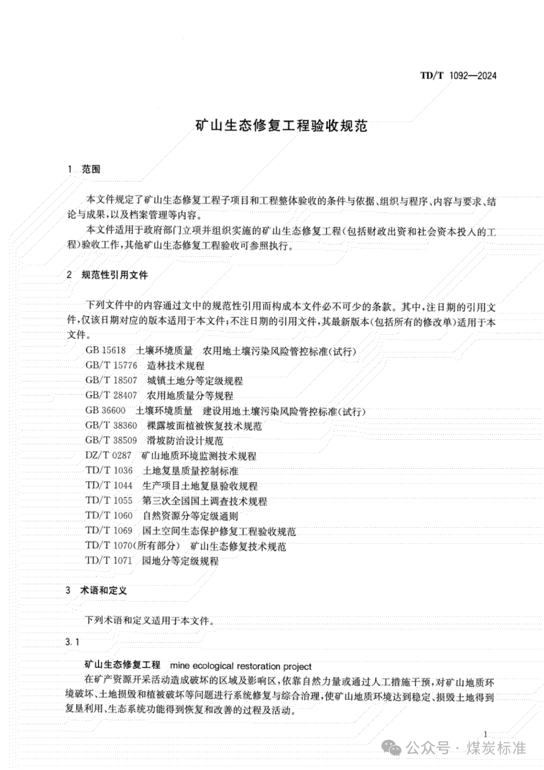 矿山生态修复工程验收规范(TD/T 1092-2024 )