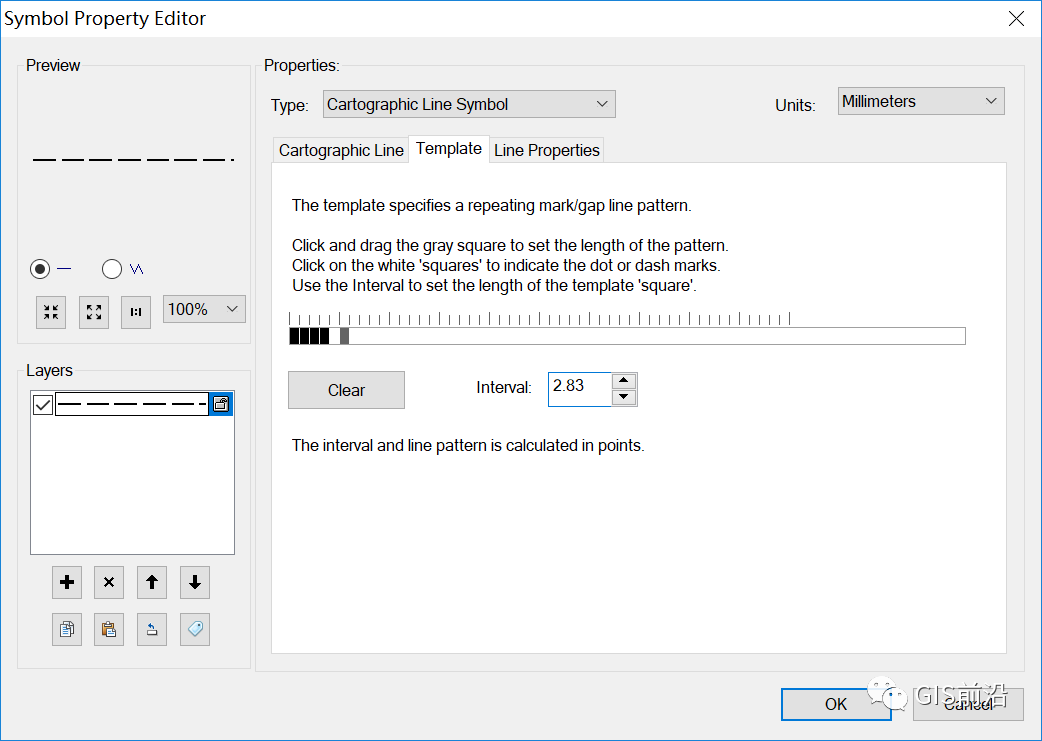 2、设置类型为【Catographic Line Symbol】,颜色为K100,单位为毫米,线宽为0.3mm;