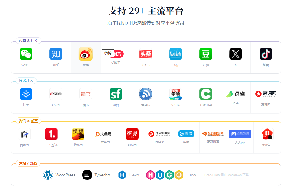 上午,一个朋友给我发了一个链接,说这东西可以把公众号文章一键同步到二十多个平台,我点进去看了一下,顺手试了试——