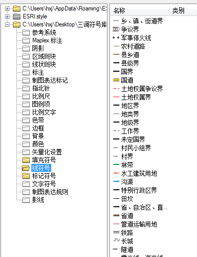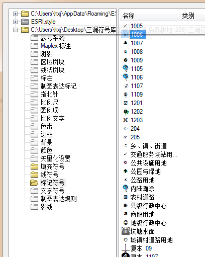 3、之后便可以在ArcGIS 的样式管理器中调用。