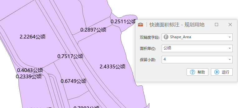 参数很简单,就是选择面积字段,面积单位,以及小数位数。