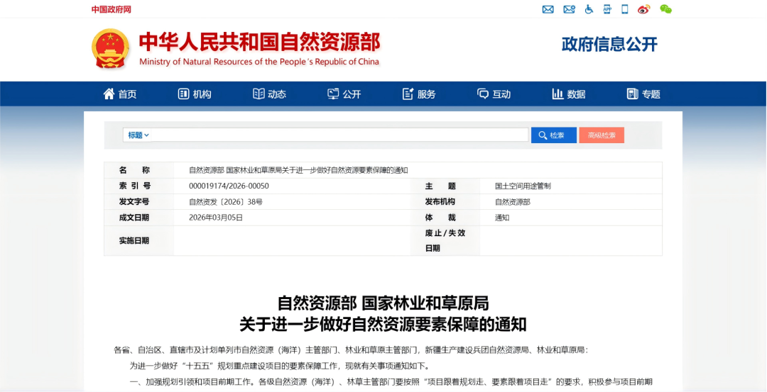 2026年3月5日,自然资源部、国家林业和草原局联合印发《关于进一步做好自然资源要素保障的通知》(自然资发〔2026〕38号),其中一条关乎单独选址项目前期审批流程的规定,值得做用地报批和项目前期的同行重点关注。