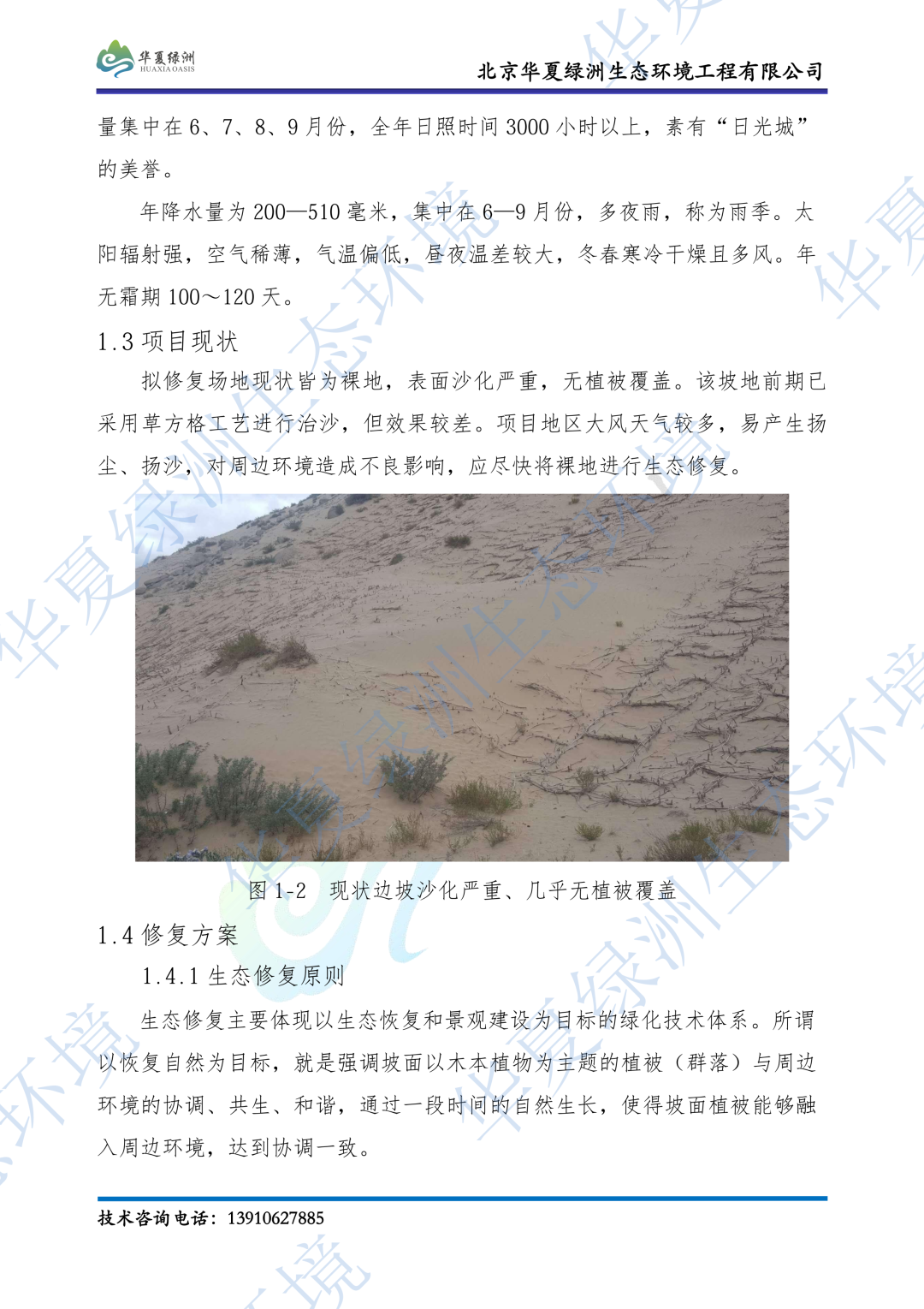 西藏拉萨某沙化坡面生态修复技术方案