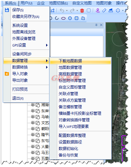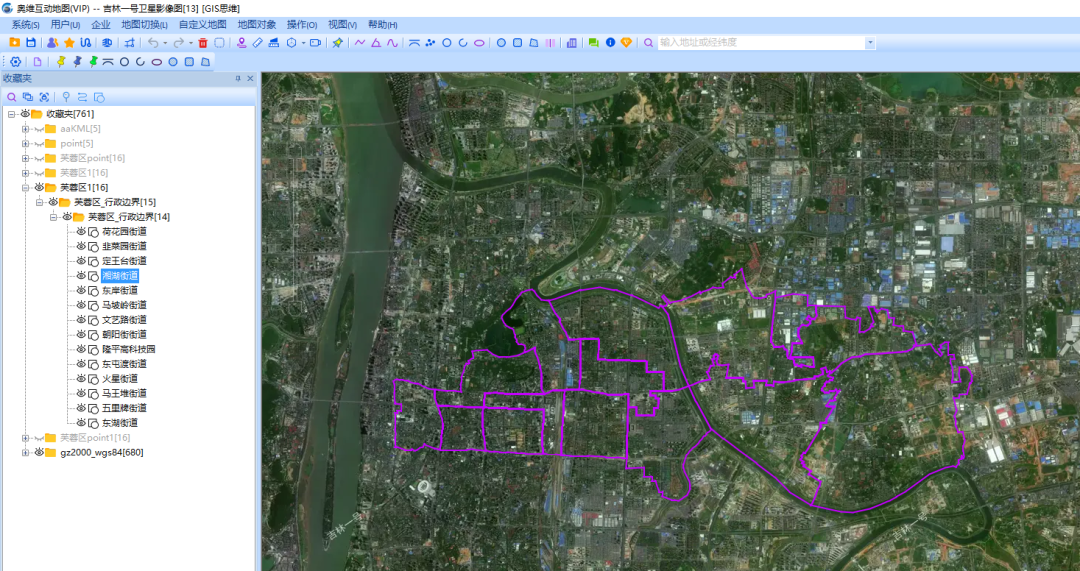 1、加载相应的行政区划kml数据或者利用系统自动的区划数据也可以。本次演示实用了湖南省长沙市芙蓉区的乡镇街道数据。